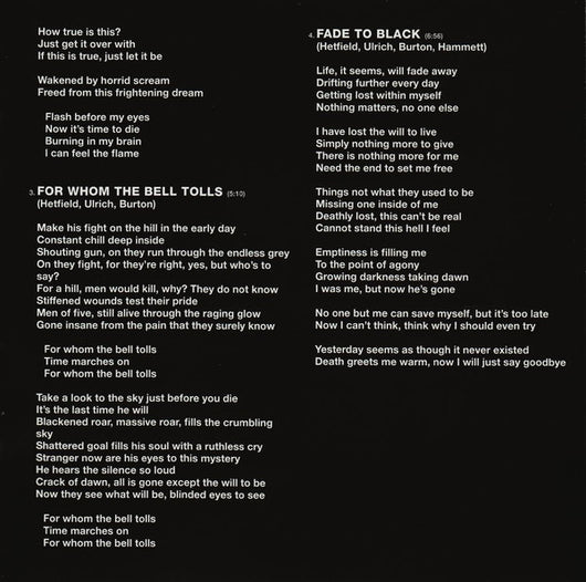 | 4 | Fade To Black | 6:56 |