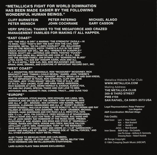 | 2 | Ride The Lightning | 6:36 |
