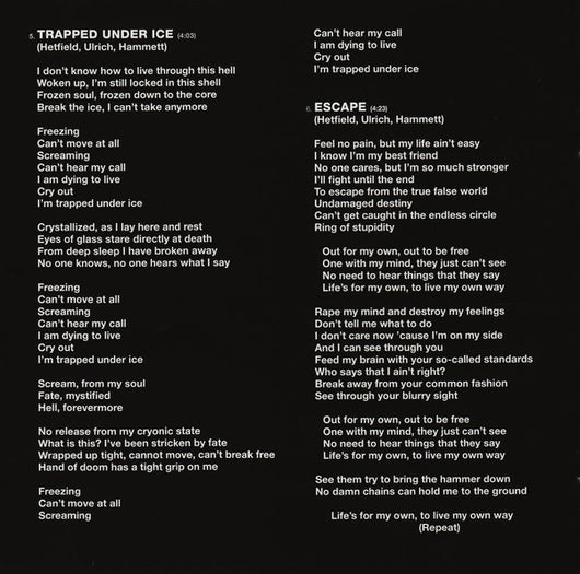 | 5 | Trapped Under Ice | 4:03 |