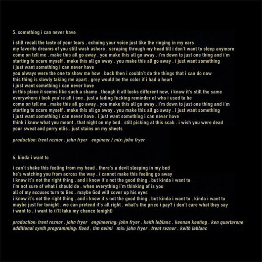 | 5 | Something I Can Never Have | 5:54 |